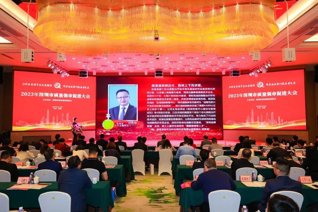 2023年4月12日,2023年深圳市質(zhì)量強市促進大會暨深圳市質(zhì)量強市促進會建會十周年慶祝大會在深圳銀湖國際會議中心舉行。大會對榮獲第九屆“深圳市質(zhì)量強市金質(zhì)獎?wù)隆奔疤崦劦膬?yōu)秀企業(yè)家進行了隆重表彰,深圳市北科生物科技有限公司董事長胡雋源博士榮獲第九屆“深圳市質(zhì)量強市金質(zhì)獎?wù)隆保瑫r經(jīng)過會議審議,胡雋源博士增補成為深圳市質(zhì)量強市促進會第三屆理事會副會長,北科生物成為深圳市質(zhì)量強市促進會副會長單位。