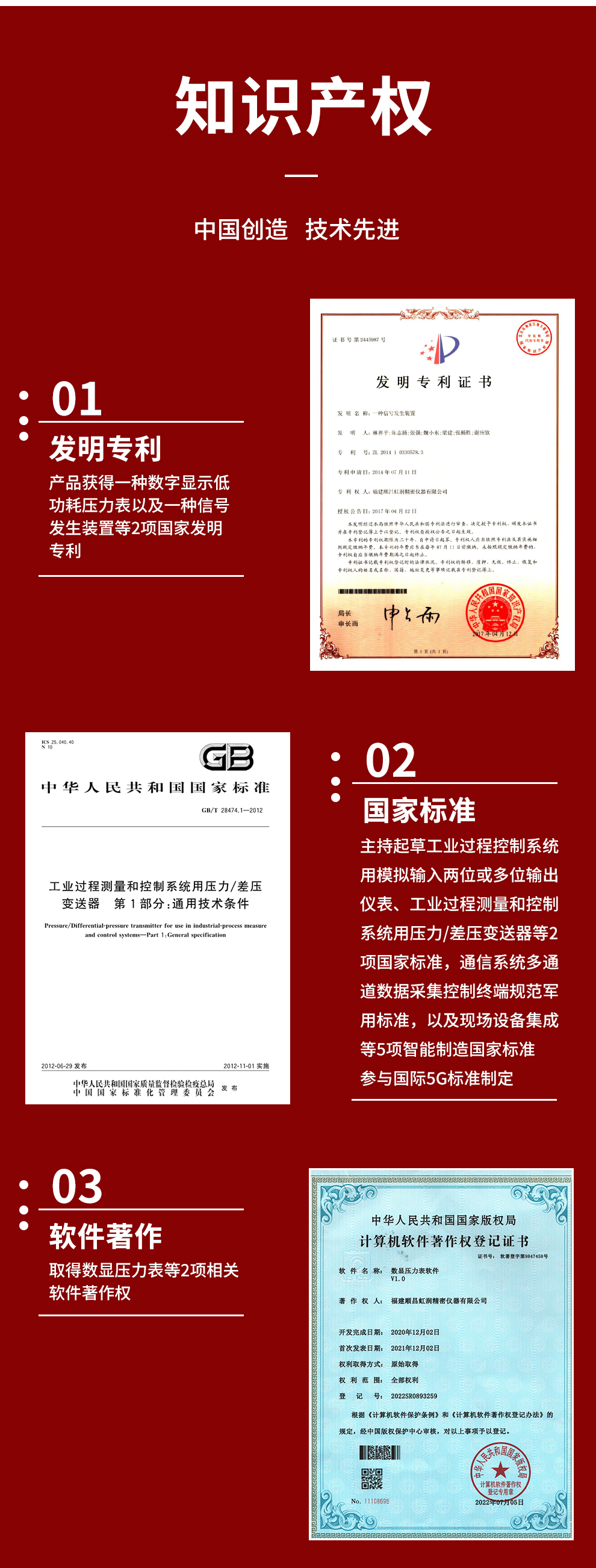 虹潤公司是專業(yè)生產(chǎn)數(shù)顯壓力表的國家專精特新“小巨人”企業(yè)。生產(chǎn)的智能數(shù)字壓力表,具有氣體液體通用,測量精度高,自動溫度補(bǔ)償,響應(yīng)速度快,電池供電低功耗漂移小等特點(diǎn)。產(chǎn)品獲得一種數(shù)字顯示低功耗壓力表以及一種信號發(fā)生裝置等2項(xiàng)國家發(fā)明專利,主持起草工業(yè)過程控制系統(tǒng)用模擬輸入兩位或多位輸出儀表、工業(yè)過程測量和控制系統(tǒng)用壓力/差壓變送器等2項(xiàng)國家標(biāo)準(zhǔn),通信系統(tǒng)多通道數(shù)據(jù)采集控制終端規(guī)范軍用標(biāo)準(zhǔn),以及現(xiàn)場設(shè)備集成等5項(xiàng)智能制造國家標(biāo)準(zhǔn),參與國際5G標(biāo)準(zhǔn)制定,取得數(shù)顯壓力表等2項(xiàng)相關(guān)軟件著作權(quán)。產(chǎn)品廣泛石化、冶金、電力、制藥、食品、航空航天、工業(yè)循環(huán)水系統(tǒng)等諸多領(lǐng)域。