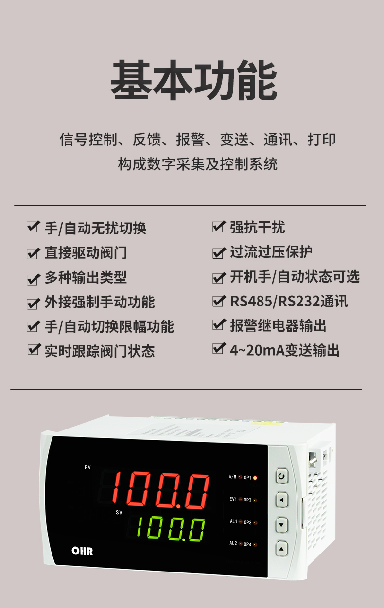 虹潤公司是專業(yè)生產(chǎn)智能手操器的國家專精特新“小巨人”企業(yè),生產(chǎn)的手動操作器,具有手自動無擾切換,直接調(diào)節(jié)閥門,多種輸出類型,外接強制手動功能,高抗干擾等特點。產(chǎn)品獲得閥門自動手動無擾動操作控制方法及裝置、模糊PID控制儀及控制方法、移相觸發(fā)控制器等3項國家標準,主持起草工業(yè)過程控制系統(tǒng)用模擬輸入兩位或多位輸出儀表、流程工業(yè)中電氣/儀表和控制系統(tǒng)的試車等2項國家標準,以及通信系統(tǒng)多通道數(shù)據(jù)采集控制終端規(guī)范軍用標準,參與國際5G標準制定,取得手動操作器等3項相關軟件著作權(quán)。產(chǎn)品廣泛應用于電力、石化、冶金、化工、造紙、食品、輕工、制藥、熱處理、水處理、機械配套等各種工業(yè)現(xiàn)場。