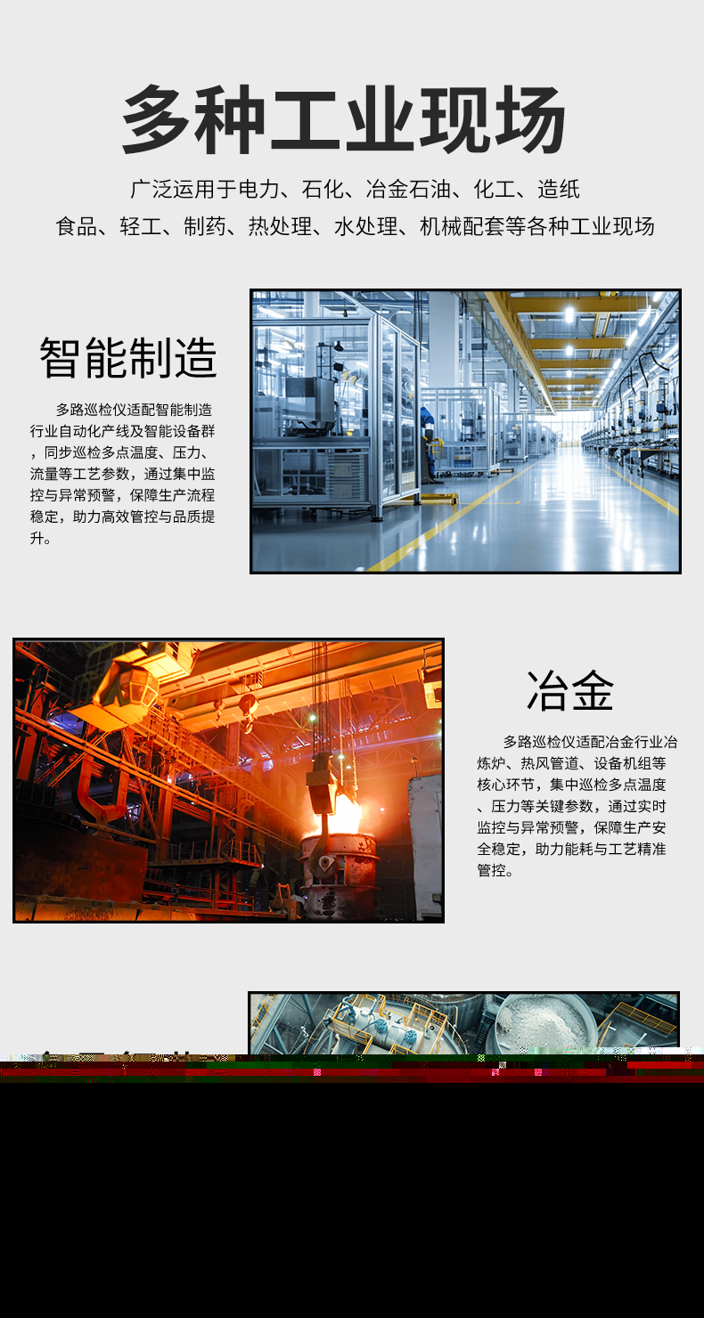 虹潤公司是專業(yè)生產(chǎn)多路溫度巡檢儀的國家專精特新“小巨人”企業(yè),生產(chǎn)的多回路測(cè)量顯示控制儀,具有8路/16路測(cè)量通道,全切換信號(hào)輸入,多種輸出類型,高抗干擾,RS485/RS232通訊等特點(diǎn)。產(chǎn)品獲得巡回檢測(cè)顯示方法及裝置、儀表殼體等2項(xiàng)國家發(fā)明專利,主持起草工業(yè)過程控制系統(tǒng)用模擬輸入兩位或多位輸出儀表、物聯(lián)網(wǎng)智能溫度儀表通用技術(shù)條件等2項(xiàng)國家標(biāo)準(zhǔn),以及通信系統(tǒng)多通道數(shù)據(jù)采集控制終端規(guī)范軍用標(biāo)準(zhǔn),參與國際5G標(biāo)準(zhǔn)制定,取得多回路測(cè)量顯示控制儀等3項(xiàng)相關(guān)軟件著作權(quán)。產(chǎn)品廣泛應(yīng)用于電力、石化、冶金、制藥、水處理、機(jī)械配套等各種工業(yè)現(xiàn)場(chǎng)。