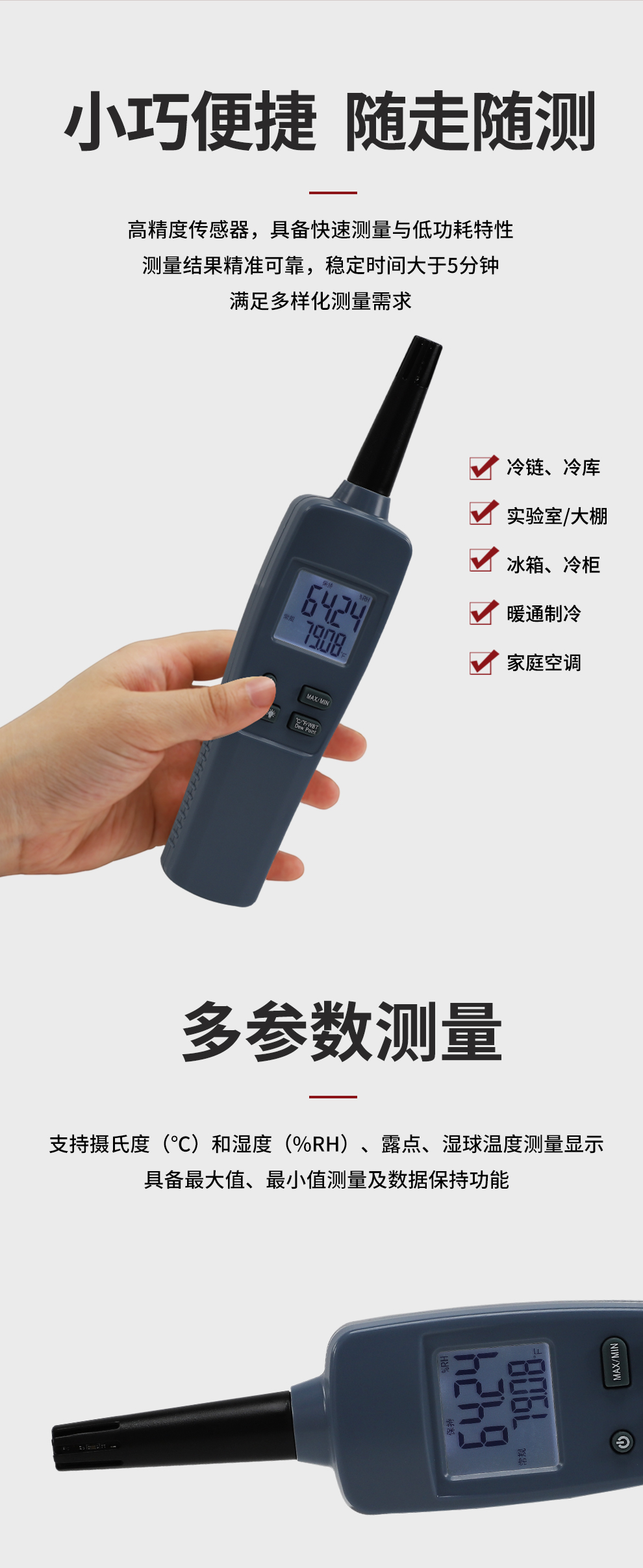 虹潤公司是專業(yè)生產(chǎn)環(huán)境監(jiān)測儀表的國家專精特新“小巨人”企業(yè)。生產(chǎn)的手持式溫濕度檢測儀,具有測量精度高,多參數(shù)測量,最大最小值記錄,小巧便捷、低功耗省電設(shè)計(jì)等特點(diǎn)。產(chǎn)品獲得一種手持式低功耗溫濕度檢測儀、大屏幕溫濕度記錄儀等2項(xiàng)國家發(fā)明專利,主持起草物聯(lián)網(wǎng)智能溫度儀表通用技術(shù)條件、冷鏈溫度記錄儀等2項(xiàng)國家標(biāo)準(zhǔn),以及通信系統(tǒng)多通道數(shù)據(jù)采集控制終端規(guī)范軍用標(biāo)準(zhǔn),以及現(xiàn)場設(shè)備集成等5項(xiàng)智能制造國家標(biāo)準(zhǔn),參與國際5G標(biāo)準(zhǔn)制定,取得環(huán)境溫濕度測試儀等3項(xiàng)相關(guān)軟件著作權(quán)。產(chǎn)品廣泛應(yīng)用于實(shí)驗(yàn)室、博物館、農(nóng)業(yè)大棚、生產(chǎn)車間、倉庫、配電機(jī)房等諸多領(lǐng)域。