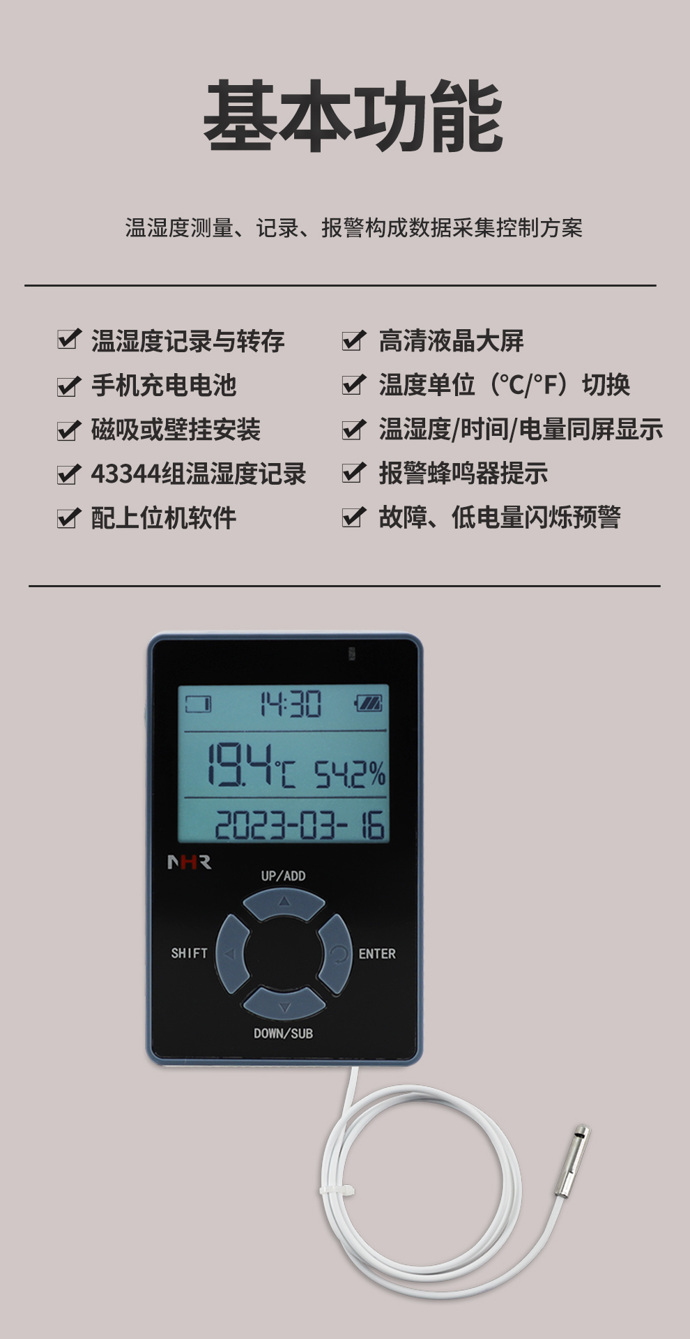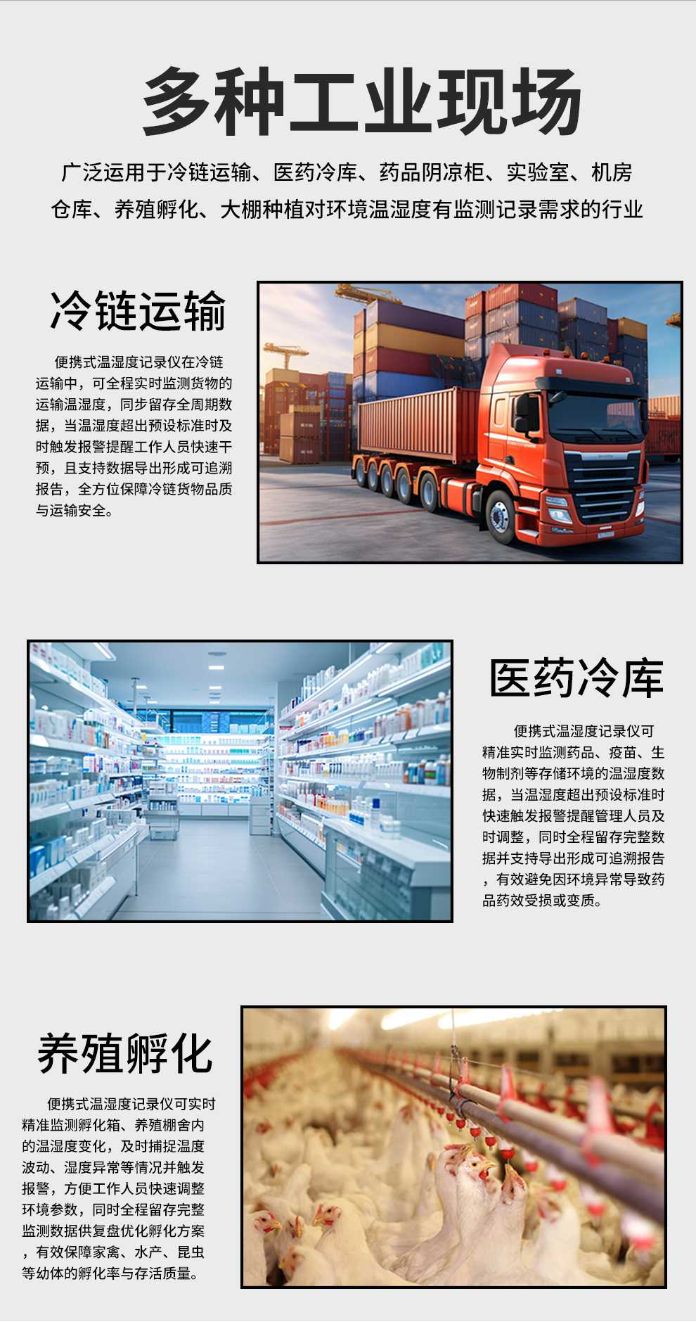 虹潤(rùn)公司是專業(yè)生產(chǎn)環(huán)境監(jiān)測(cè)儀表的國(guó)家專精特新“小巨人”企業(yè)。生產(chǎn)的便攜式溫濕度記錄儀,具有溫濕度記錄與轉(zhuǎn)存,手機(jī)充電電池,磁吸或壁掛安裝,故障報(bào)警提示,配上位機(jī)軟件等特點(diǎn)。產(chǎn)品獲得一種手持式低功耗溫濕度檢測(cè)儀、無紙記錄儀等2項(xiàng)國(guó)家發(fā)明專利,主持起草物聯(lián)網(wǎng)智能溫度儀表通用技術(shù)條件、冷鏈溫度記錄儀等2項(xiàng)國(guó)家標(biāo)準(zhǔn),通信系統(tǒng)多通道數(shù)據(jù)采集控制終端規(guī)范軍用標(biāo)準(zhǔn),以及現(xiàn)場(chǎng)設(shè)備集成等5項(xiàng)智能制造國(guó)家標(biāo)準(zhǔn),參與國(guó)際5G標(biāo)準(zhǔn)制定,取得便攜式溫濕度記錄儀等3項(xiàng)相關(guān)軟件著作權(quán)。產(chǎn)品廣泛應(yīng)用于冷鏈運(yùn)輸、醫(yī)藥冷庫(kù)、藥品陰涼柜、實(shí)驗(yàn)室、機(jī)房倉(cāng)庫(kù)、養(yǎng)殖孵化、大棚種植等諸多領(lǐng)域。