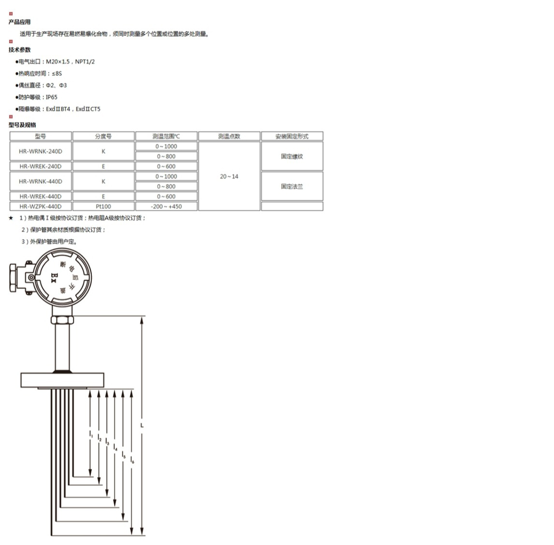 多點(diǎn)隔爆熱電偶(阻)適合生產(chǎn)現(xiàn)場存在易燃易爆化合物,須同時測量多個位置或位置的多處測量。廣泛應(yīng)用于石油化工精餾塔裝置。